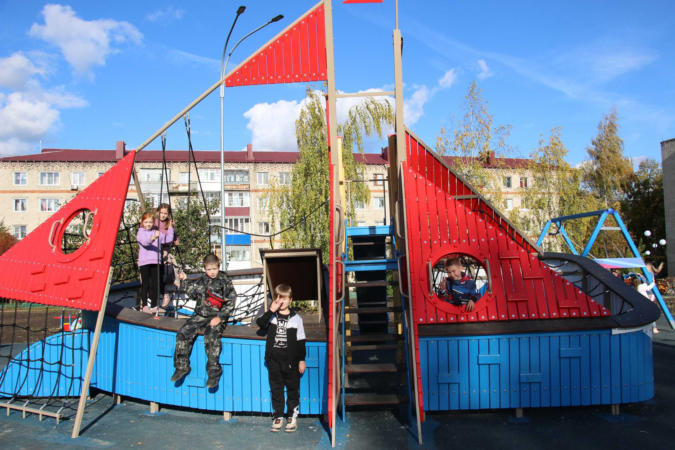 Ещё одно новое современное общественное пространство создано в Сергаче благодаря участию округа в федеральном проекте «Формирование комфортной городской среды». В 2023 году преобразилась территория в микрорайоне Юбилейном между домами №№12, 13, 14. На месте обычного двора теперь необычная зона отдыха: дорожки из брусчатки, скамейки, фонари, оригинальный городок для детворы. Игровая зона выдержана в морском стиле. В центре – тематический комплекс «Алые паруса». А вокруг качели – маятник, карусели, песочница, тренажёр-экскаватор.