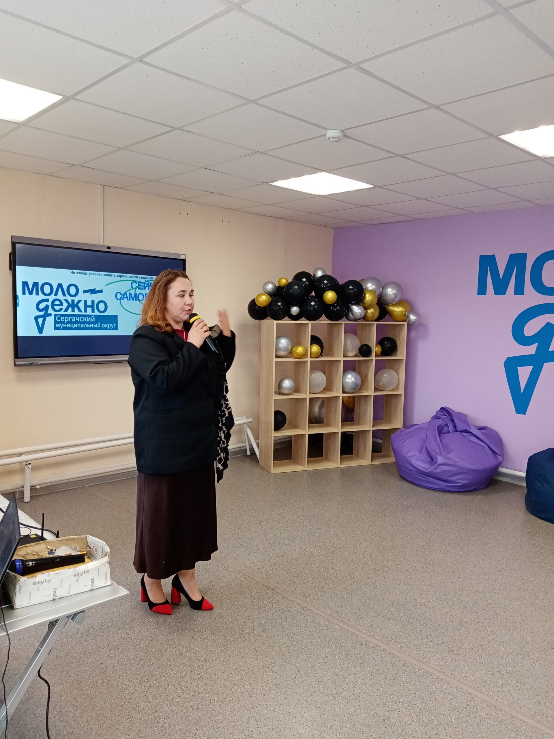 – Мы заявились на участие в грантовом конкурсе, объявленном министерством молодёжной политики Нижегородской области, выиграли и получили около 700 тысяч рублей на закупку необходимого оборудования, в том числе многофункциональной интерактивной панели и современной мебели. Ранее в этом помещении на средства муниципального бюджета был произведён ремонт. Цель – создание условий для досуга детей, подростков и молодёжи. Здесь ребята смогут общаться, смотреть фильмы, найти интересное дело по душе, научиться самоорганизованности и ответственности. Рассчитываем, что здесь они будут ещё и заниматься спортом, и досуг будет активным, – отметила Ирина Курасова, заместитель главы, начальник управления образования, развития спорта и молодёжной политики администрации Сергачского муниципального округа.