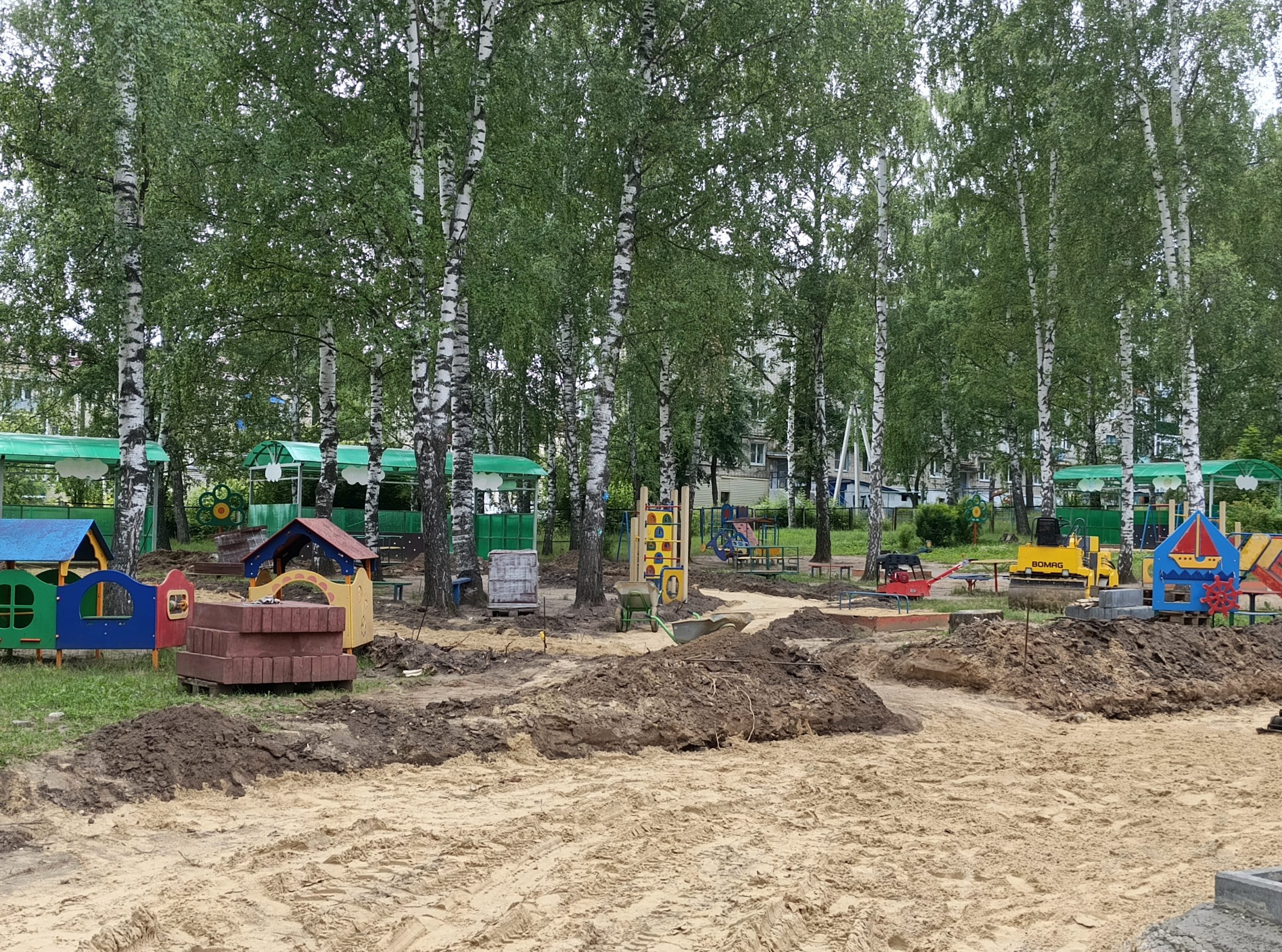 В прошлом году отремонтировали все внутренние помещения, а в этом дошла очередь до территории. В соответствии с контрактом будут выполнены работы по обновлению отмостки и асфальтированию пространства вокруг здания и дорожек к групповым участкам для прогулок. Со 2 июня на время ремонта дети распределены по другим городским детским садам с учётом пожеланий родителей.