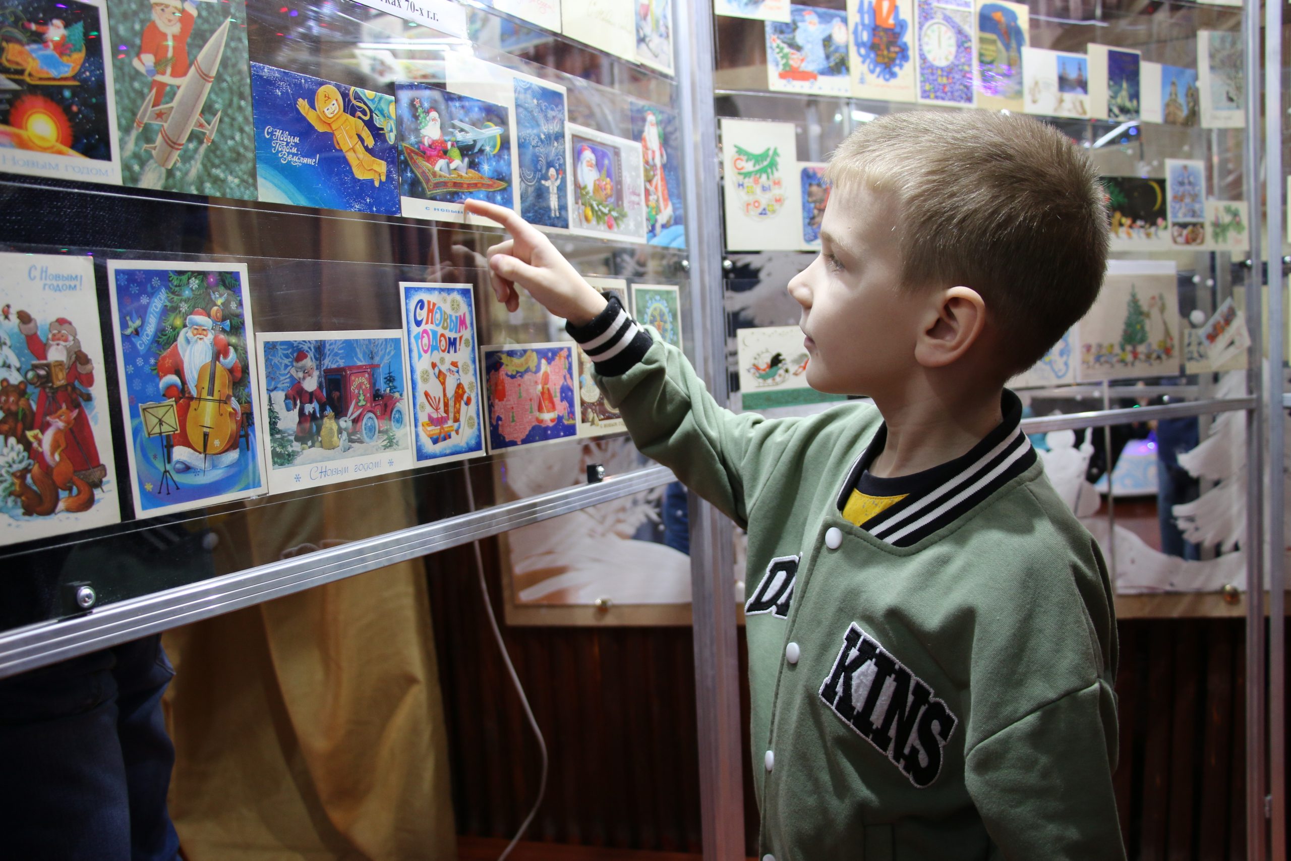 Первых посетителей новой экспозиции ждало путешествие в волшебный мир открыток, выпущенных в 50-е, 60-е, 70-е годы прошлого века. На стендах открытки талантливых художников – иллюстраторов Владимира Четверикова, Алексея Исакова, Владимира Зарубина и других. Они выполнены в разных стилях и отражают не только новогоднюю тематику. Также представлены наборы «Буратино», «Незнайка», «Руслан и Людмила». Невероятно атмосферные работы передают дух любимых фильмов и мультфильмов, народных сказок и произведений известных авторов.