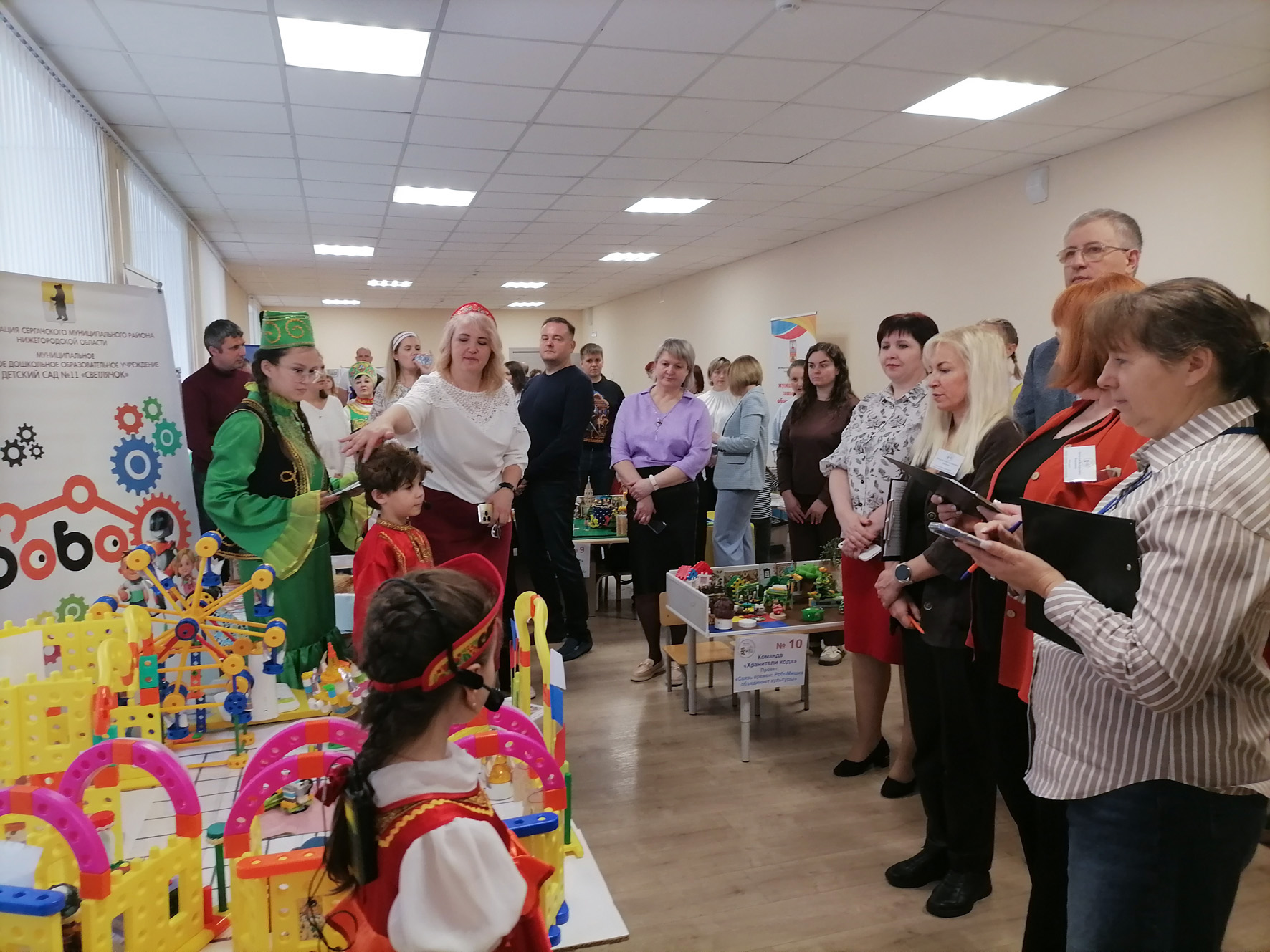 Традиционно командам необходимо было пройти конкурсные испытания. В первом заочном этапе – это «Инженерная книга робототехнического проекта» и в финале очного этапа – «Защита робототехнического проекта» и «Алгоритмическая азбука». 16 команд-финалисток приехали в наш город из разных уголков Нижегородской области: Семёновского, Борского, Балахнинского, Городецкого, Богородского округов и Нижнего Новгорода. Сергачский округ представили 5 команд из детских садов «Светлячок», «Солнышко», «Жемчужинка», «Берёзка», «Ручеёк» и команда центра «Созвездие».
