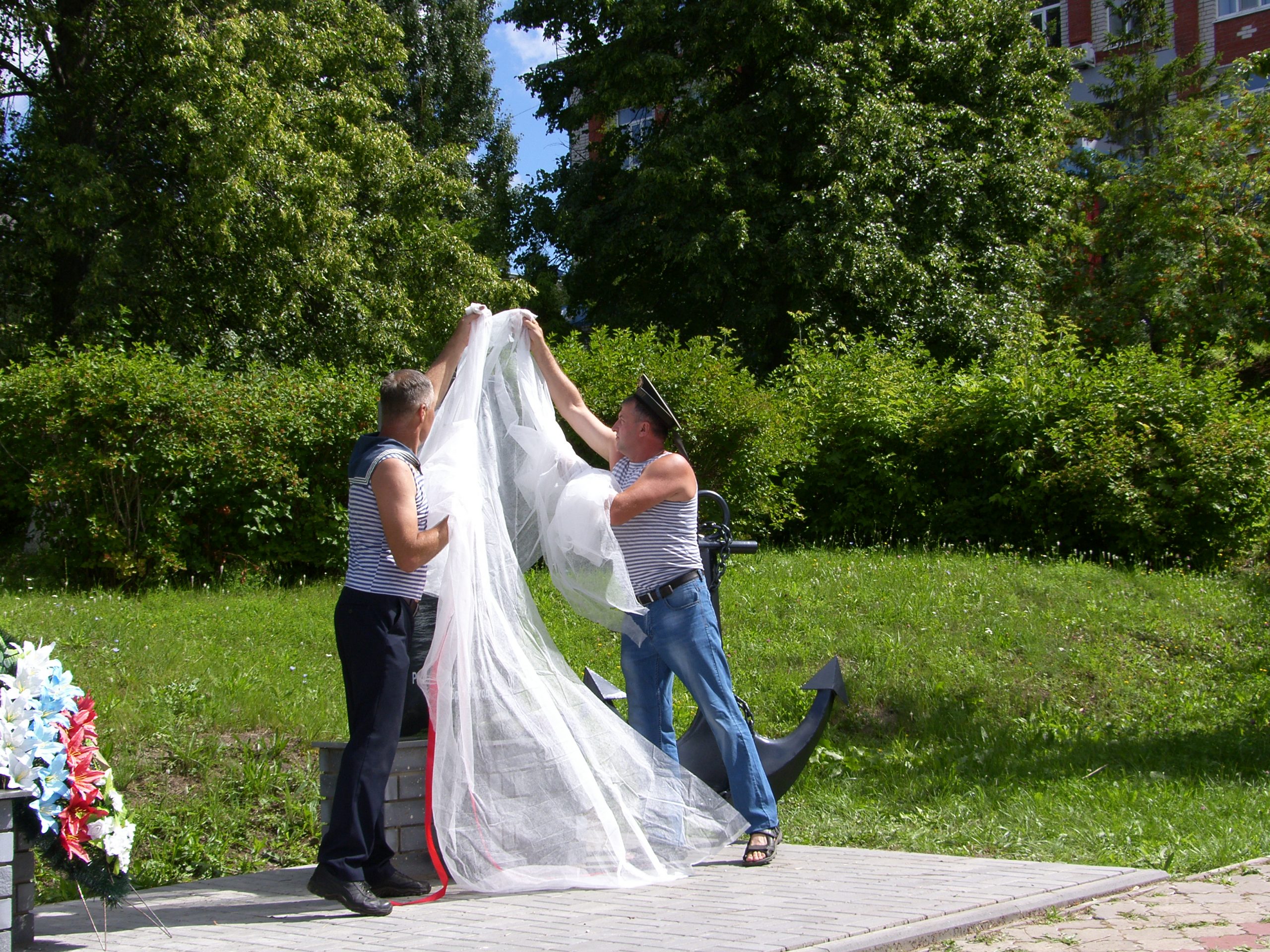 Честь открытия стелы была предоставлена рядовому запаса военно-морского флота Дмитрию Лаптеву и старшине 2-ой статьи Олегу Живаеву.